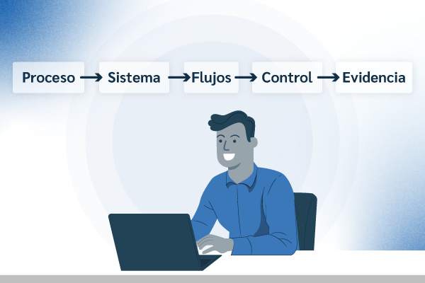 Proceso → Sistema → Datos → Flujos → Control → Evidencia